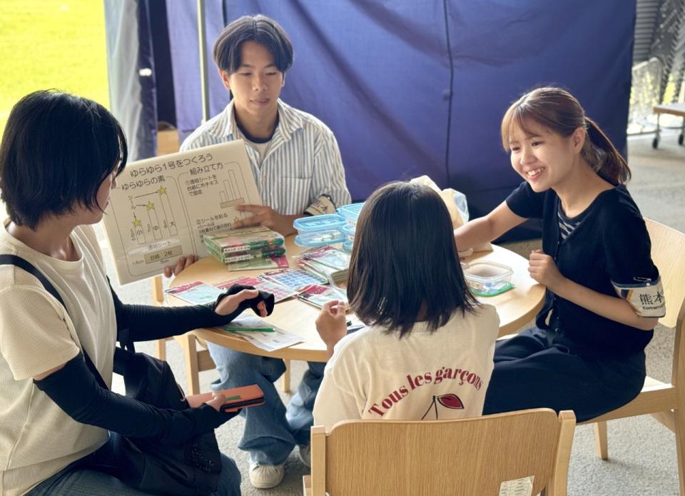 午後には熊本大学の皆様による防災ワークショップを実施し、土砂災害模型や液状化の仕組みを体験できるプログラムを子どもたちが真剣に学ぶ姿が見られました。そのほか、展示パネル紹介やキッチンカー、クイズラリーなども行われ、終日多くの方にご参加いただきました。
